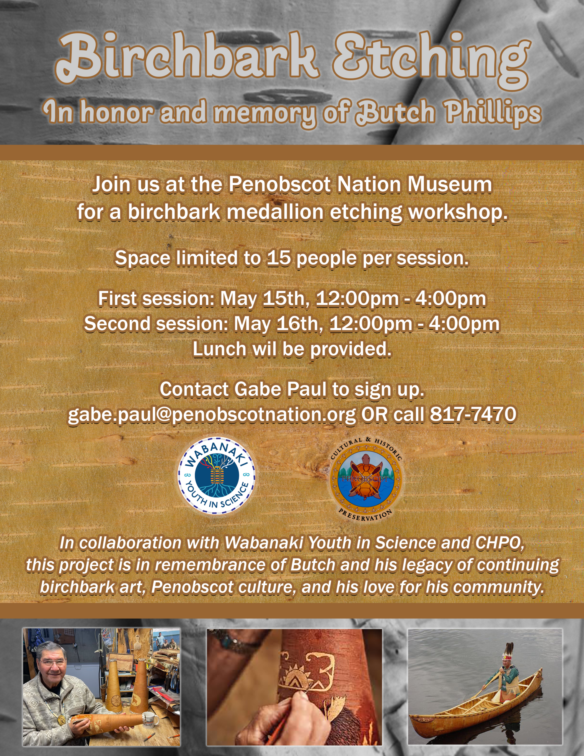 Join us for community birchbark medallion workshops in remembrance of Butch Phillips. In collaboration with Penobscot Nation Cultural Historic Preservation Office and the Penobscot Nation Museum, this project supports the continuation of the legacy of birchbark art, Penobscot culture and love for community that Butch offered to the world. Contact Gabe Paul to sign […]