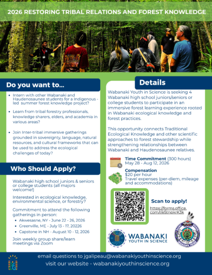 Contact Jennifer Galipeau for questions @ jgalipeau@wabanakiyouthinscience.org